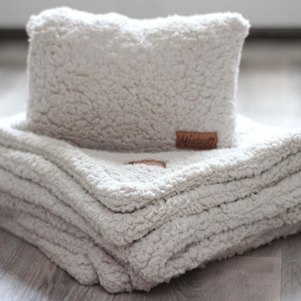A stunning blanket and pillow gift set in fresh chalk white from The Stylish Dog Company. A coordinated set that looks beautiful in any room — the perfect gift for design-conscious dog owners. Handmade in the UK.