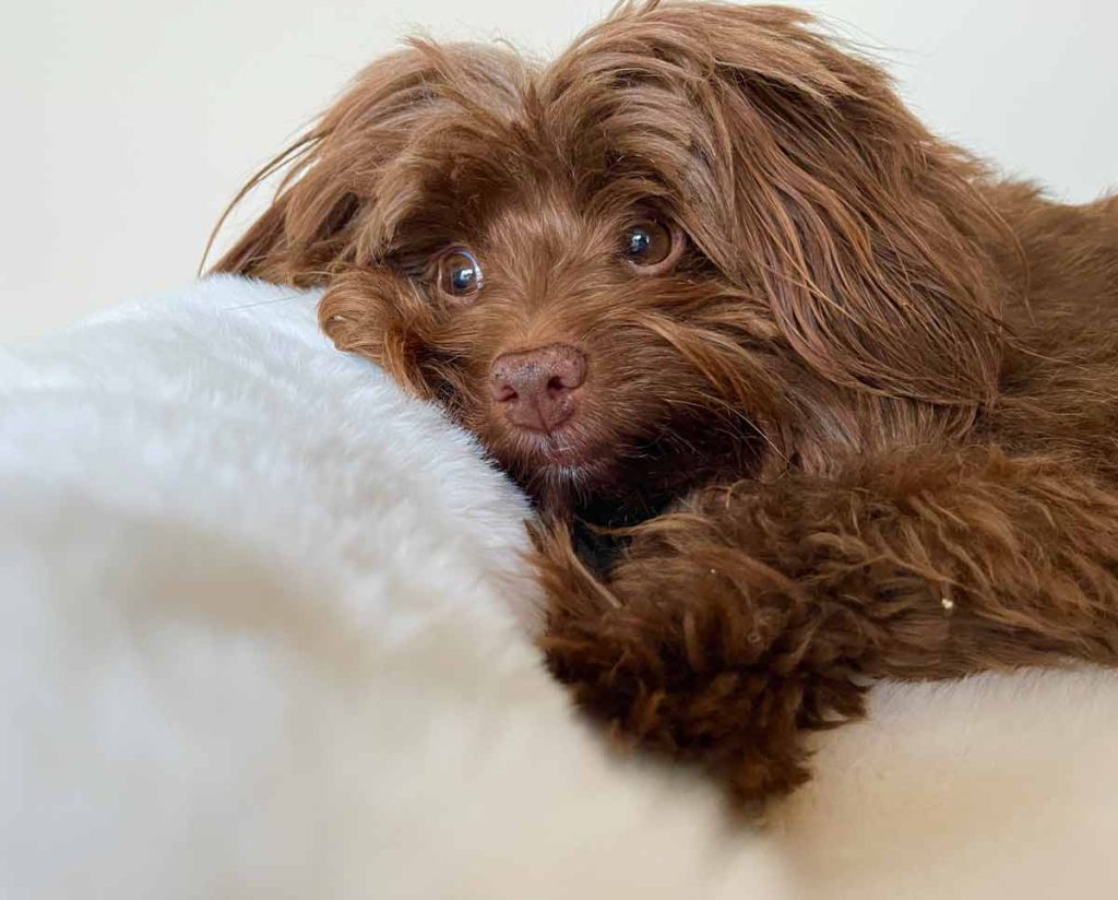 A pristine ivory faux fur blanket from The Stylish Dog Company. The Softee texture is one of their gentlest — perfect for puppies and anxious dogs who need calming comfort. A beautiful, clean look for any home. Handmade in the UK.