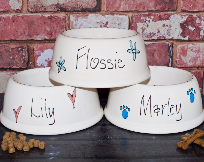 Personalised Slanted Ceramic Dog Bowls — Whimsical